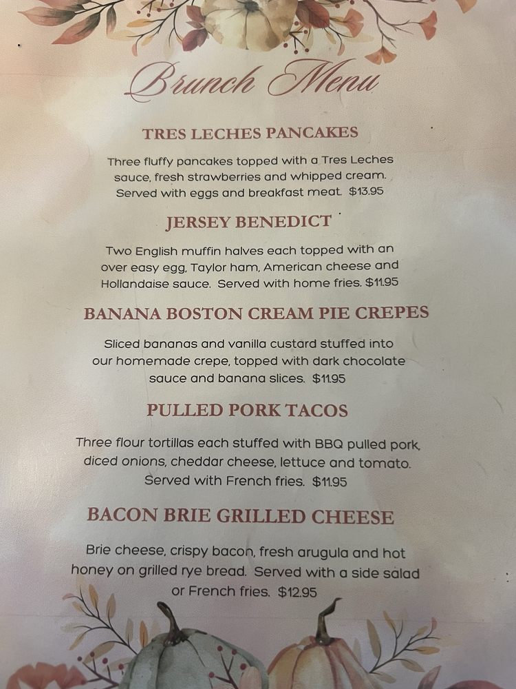 Welcome to The Crystal Cafe, your go-to spot for delightful breakfast and brunch in Vernon Township, NJ. This charming eatery beckons with a cozy atmosphere, perfect for leisurely mornings and family gatherings. The menu is a treasure trove of options, featuring exquisite crêpes such as the Strawberries & Cream and Banana Nutella, both priced at $13.49. Delight in their fluffy pancakes or waffles, available starting at just $9.99, while complimentary sides of eggs and meat round out your meal. For the omelet lovers, selections like the Lox & Onion or Avocado & Chicken promise a burst of flavors, with prices ranging from $8.49 to $14.49.